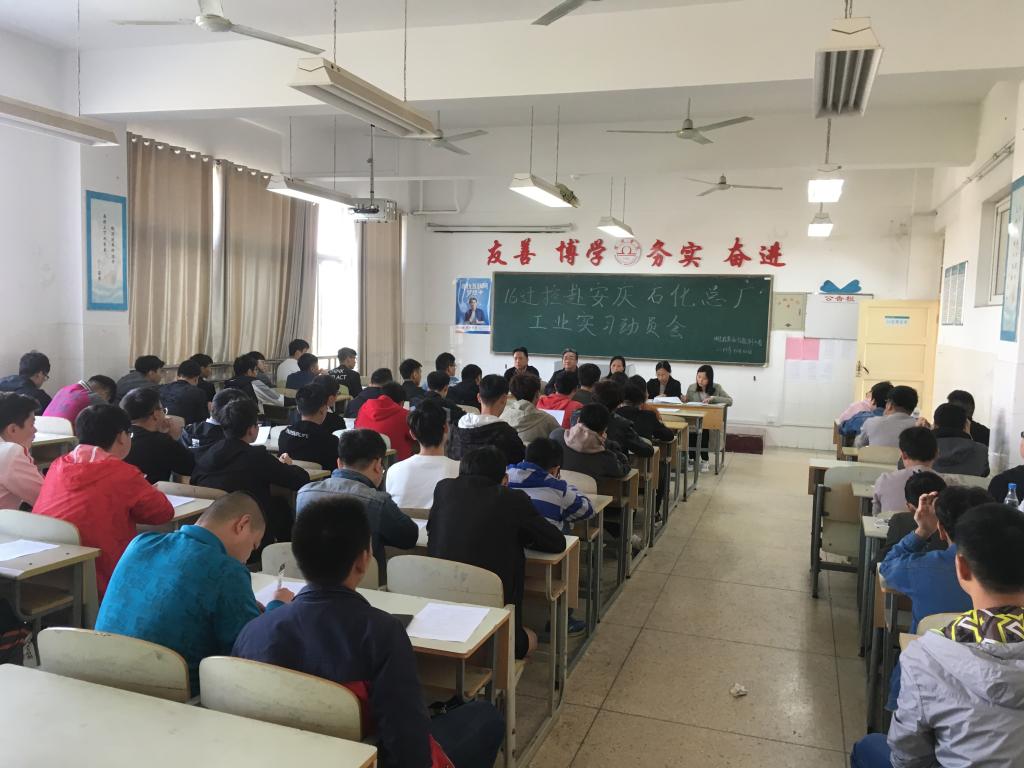 根据专业教学计划安排,2016级过程装备与控制工程专业学生将于11月5日至11月9日赴中国石化集团安庆分公司进行为期5天的工业实习。为进一步落实工作部署,10月31日中午,实习动员大会在实验楼A412举行。党总支书记徐基贵、院长王红艳、党总支副书记副院长史洪伟、教研室主任周丹红,指导教师及2016级过程装备与控制工程专业共计64名学生参加本次动员会。会议由学院实验实训中心主任秦苗主持。
